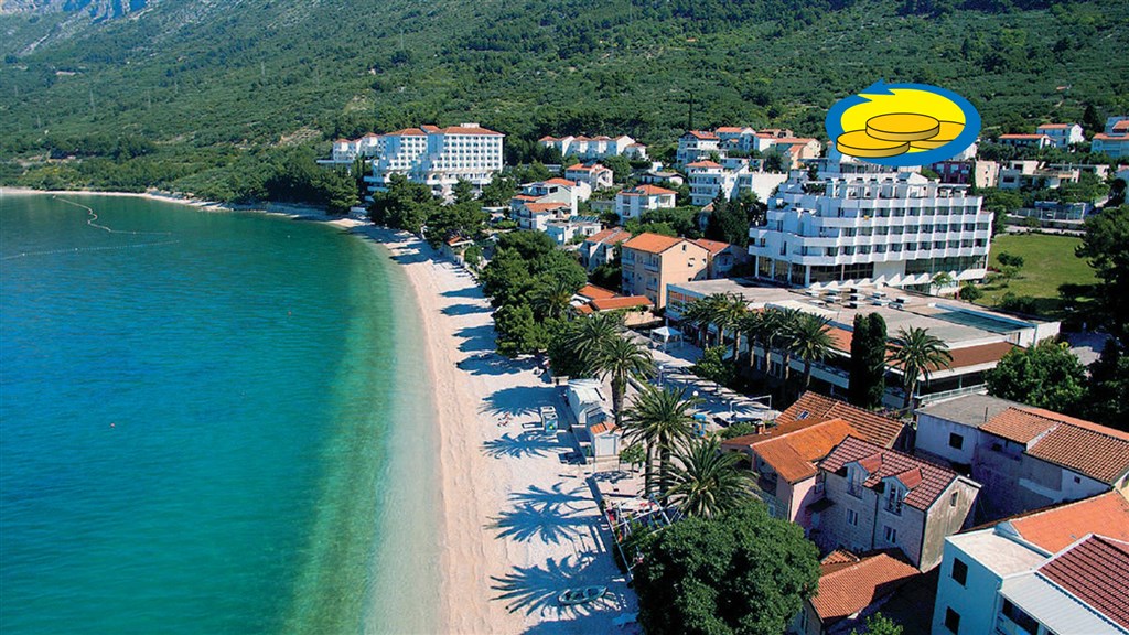 Hotel leží v borovicovém háji u krásné 1,5 km dlouhé oblázkové pláže, od níž ho odděluje pouze pobřežní promenáda, vedoucí do 700 m vzdáleného centra Gradacu. Hostům hotelu slouží restaurace s taneční terasou, aperitiv-bar, sejf, TV-místnost, recepce, bankomat a směnárna. Pro sportovní vyžití jsou tu tenisové kurty (za poplatek). Na pláži je možnost provozovat různé vodní sporty. Pokoje hotelu jsou částečně renovovány, vybaveny novým nábytkem a mají boční pohled na moře. Společné prostory jsou klimatizovány. Před hotelem parkoviště pro hotelové hosty. Ve městě je půjčovna kol. Check-in 14 hod., check-out 9 hod.