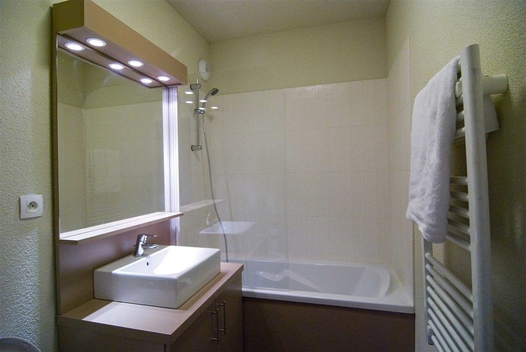 Ap. 6 (cca 42 m²), obývací místnost s kuch. a jídelním koutem a rozkládacím gaučem pro 2 os., 2 ložnice (dvoulůžko nebo 2 samostatná lůžka nebo palanda), koupelna s vanou, navíc koupelna se sprchou, WC (někdy oddělené), balkon nebo terasa.