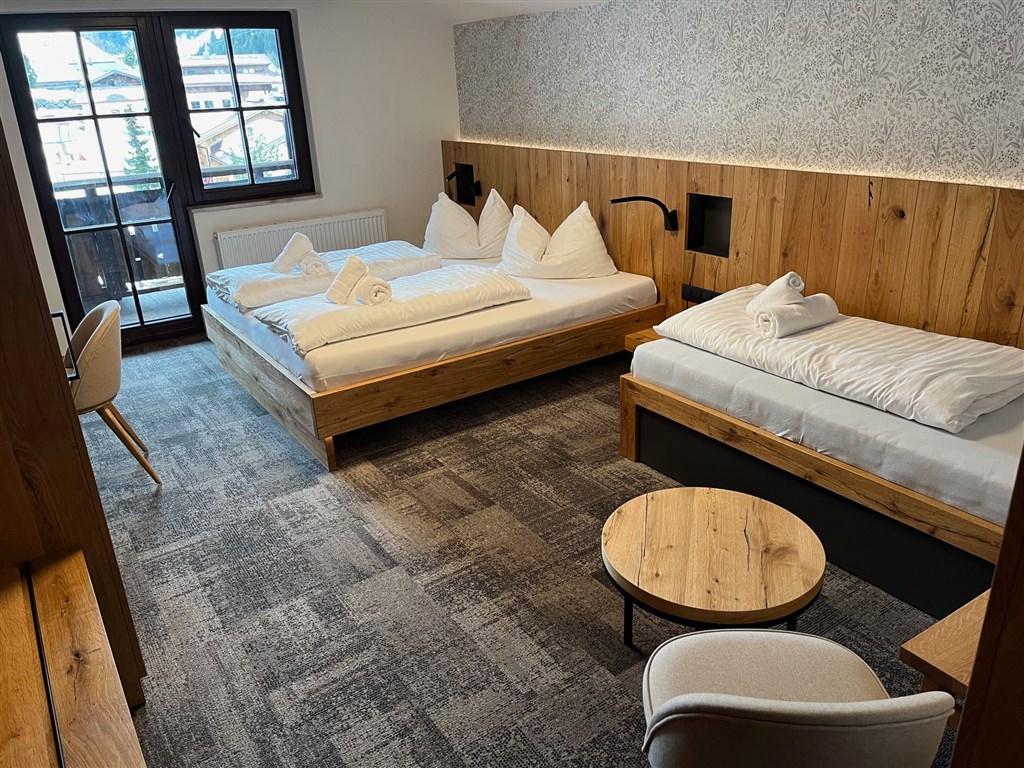 • Ho. 1/4 – standardní pokoj s manželskou postelí a dvěma oddělenými lůžky příp. druhou manželskou postelí.